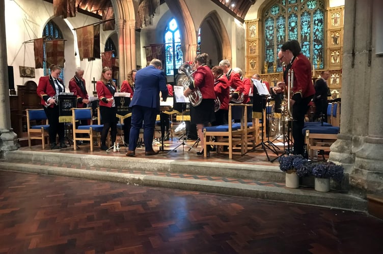 On a balmy summer’s evening in August, two brass bands joined forces, to provide an evening’s entertainment in St Petroc’s Church.