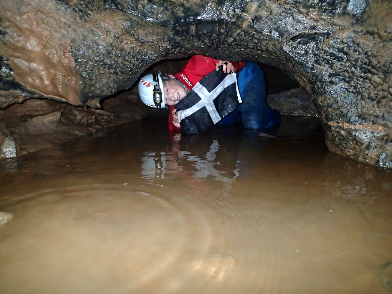 Cornish Bard and member of the British Caving Association, Pat Tremain of Launceston, has been taking the Cornish National Flag underground since 2014.