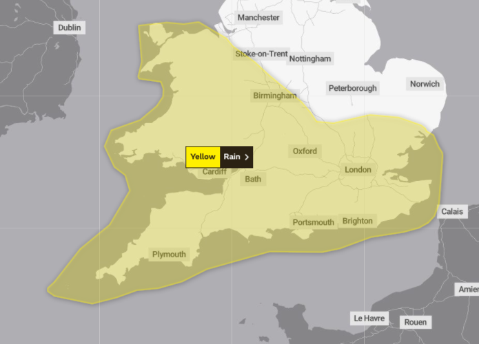 From 9pm tomorrow (October 12), until 11.59pm on Friday, October 13, weather maps of the South West are set to be shrouded in yellow as the Met Office warn of heavy showers.Â