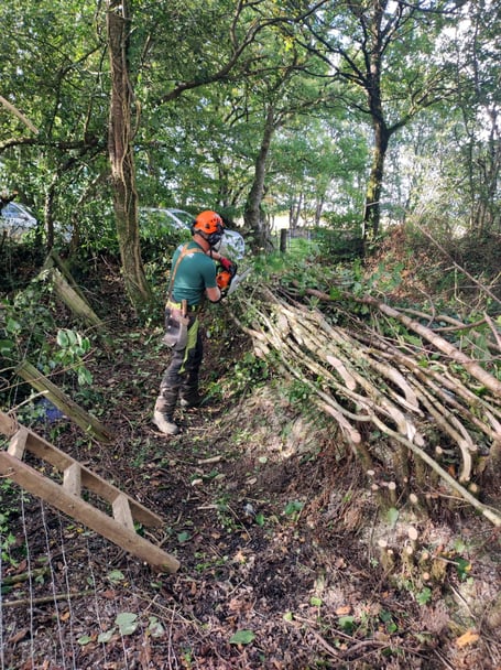 Langore Tree Services is working in Partnership with South West Lakes Trust and South West Water to restore over 700 metres of ancient Devon hedgebank by ‘steeping’ (hedgelaying) in the traditional way as they have been maintained for generations.