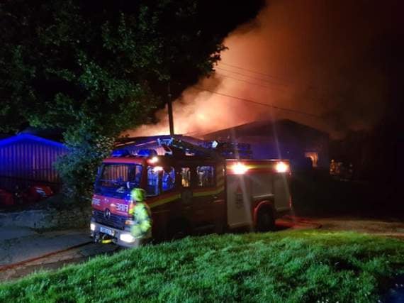 Crews tackled the fire using two breathing apparatus, two compressed air foam jets, three jets using water from a water shuttle and dam.