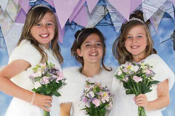 Dressed in white and attended by her sisters, nine-year-old Eden and seven-year-old Minnie — all three looked pretty as a picture.