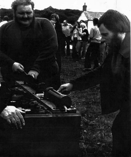 Times Past: The Post is grateful to Leanne Hampshire for supplying this photograph of Roger Pethick and Colin Frohlick confidently demonstrating the ‘Splat the Rat’ game at Trevalga fete.